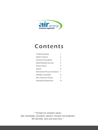 Air Energi is an expert in providing personnel and expertise to the global oil and gas industry through their technical consultants, project teams, and recruitment solutions. They have over 30 years of experience working in over 50 countries worldwide. Air Energi ensures efficient mobilization of personnel through their global infrastructure and locally-based mobility experts who are available to assist candidates both before and after deployment. Their focus on safety, knowledge, innovation, passion, inclusion and pragmatism has made Air Energi a trusted partner for oil and gas operators and engineering companies.