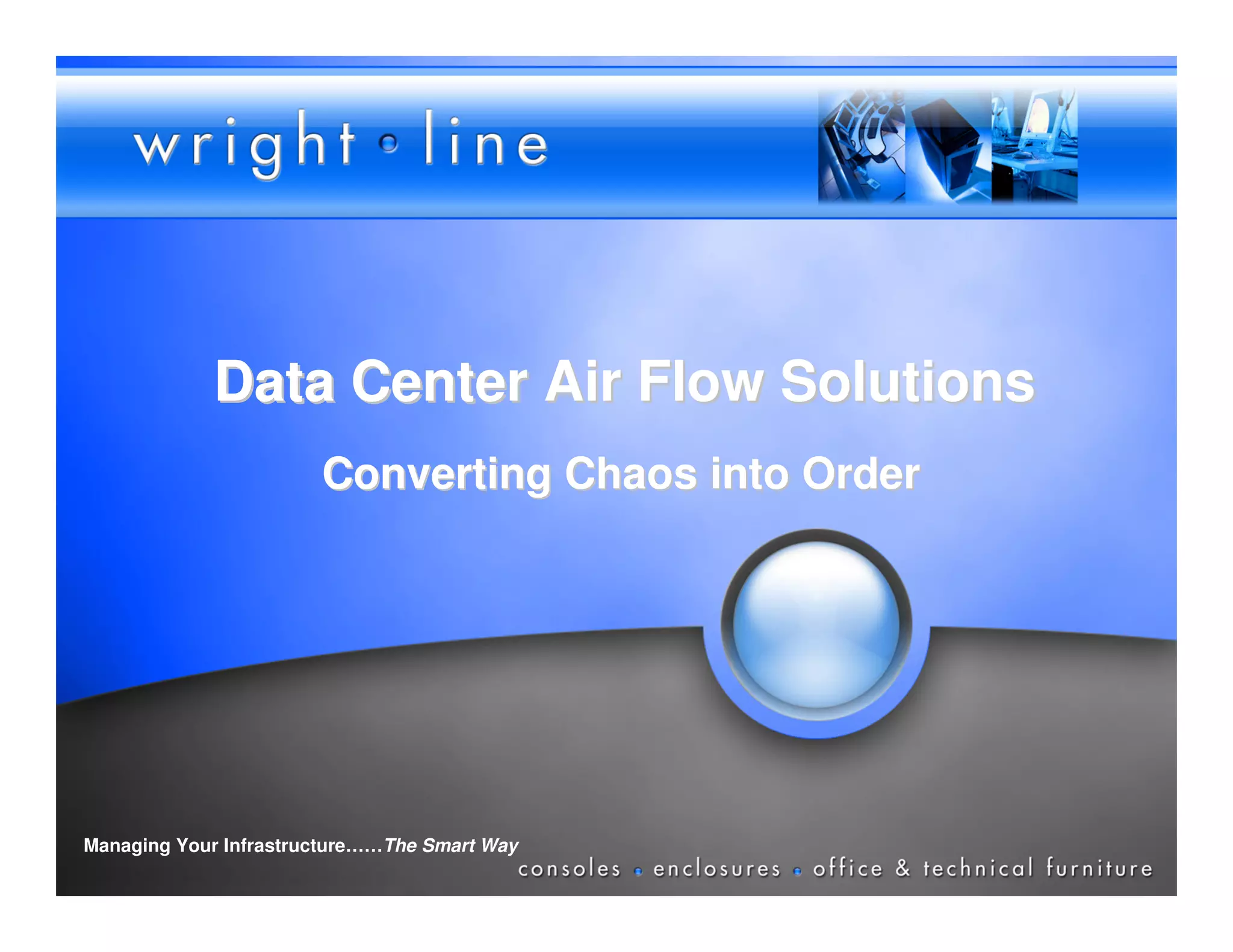 The document discusses data center air flow solutions and the challenges associated with power consumption and energy efficiency in IT infrastructure. It emphasizes the importance of optimizing air flow management to reduce operational costs and improve cooling efficiency, particularly in legacy data centers. Wright Line offers various strategies, including cold aisle containment, hot aisle containment, and rack-based heat containment, to address issues of heat and power management in data centers.