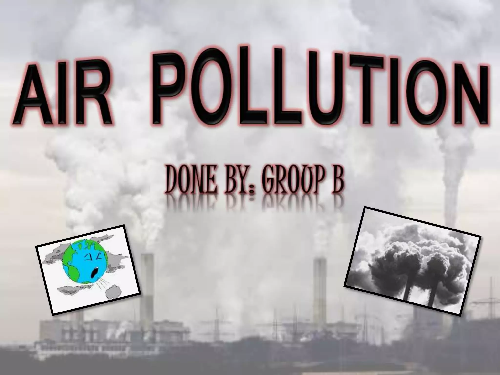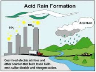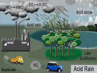 Air pollution is the introduction of harmful substances into the atmosphere, which can cause health issues and environmental damage. It is caused by the burning of fossil fuels like coal and petroleum, which release nitrogen, sulfur, and particulate matter. This can produce smog and acid rain. Regular inhalation of these polluted air can increase risks of diseases like asthma, COPD, and lung cancer. Governments have made efforts to reduce sulfur dioxide emissions with some success, but air pollution remains a threat, especially to children and the elderly. Reduction efforts include embracing cleaner transportation, fuels, production, and increasing green spaces.