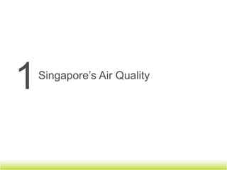 The document discusses trends in Singapore's air quality from 1993 to 2011, noting that air quality has improved significantly over that period. It also compares Singapore's air quality to other Asian and European/US cities. Additionally, it outlines Singapore's targets for reducing various air pollutants by 2020 and long term, and provides roadmaps for achieving the targets through measures related to vehicles and industries. Finally, it mentions enhancements to air quality reporting such as continuing to report the Pollutant Standards Index while also reporting daily PM2.5 levels.