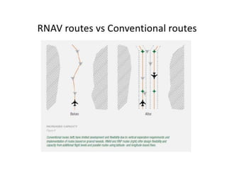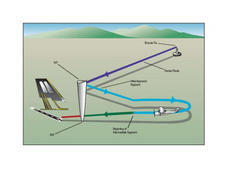 The document discusses air traffic control and navigation principles, outlining flight rules such as VFR and IFR, and the technologies used for navigation in commercial aviation. It explains the role of air traffic control (ATC) in regulating air traffic and ensuring safety within designated airspace, alongside the various systems and methods such as GPS, INS, and radio beacons that facilitate navigation. The document also covers the organization of airspace, flight planning, and emergency communication protocols in aviation.