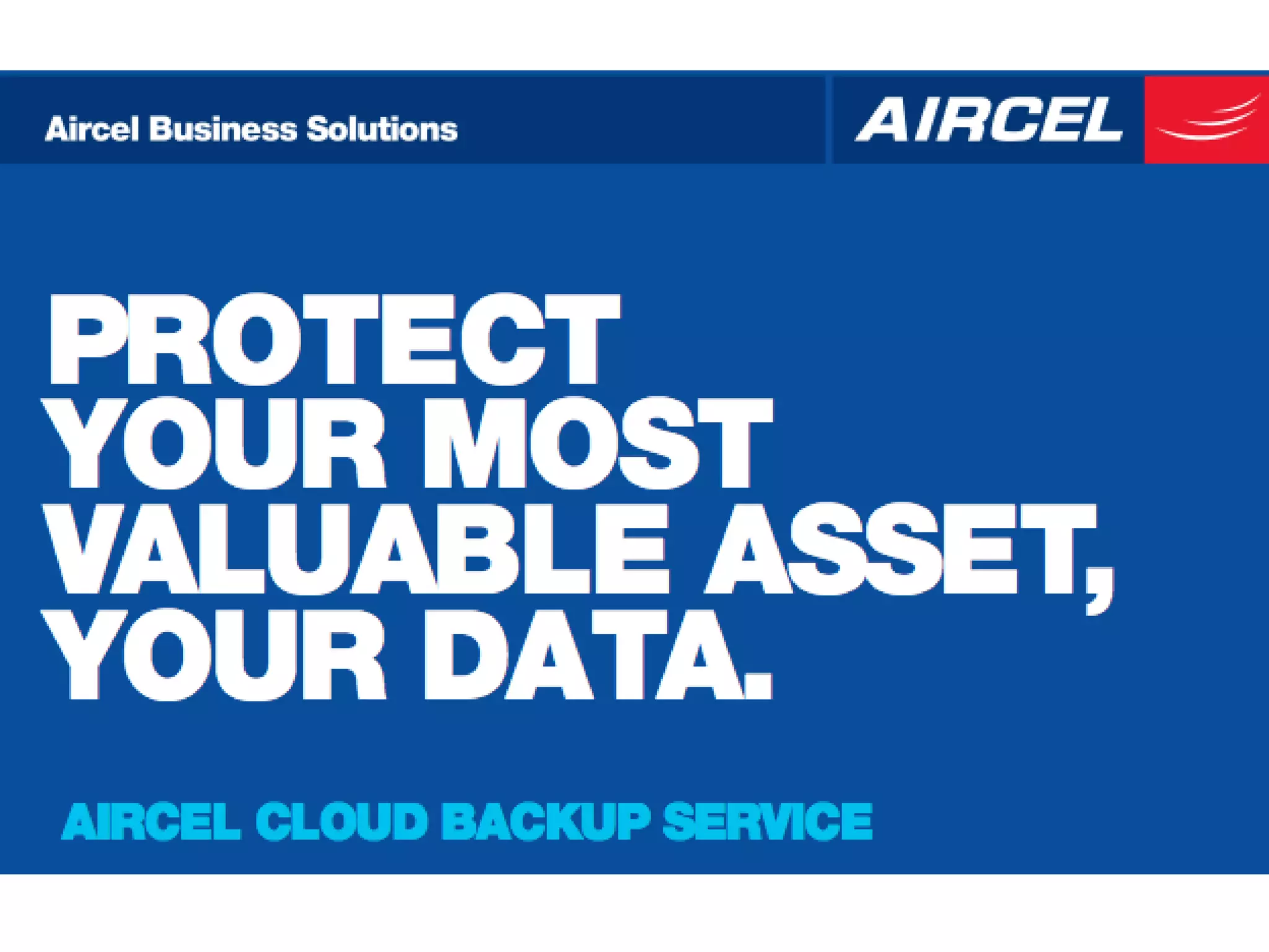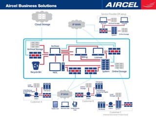 Aircel introduces its cloud backup service powered by Backup Vault. The service uses agentless, cloud-based backups with encryption to address challenges around growing data volumes, slow/complex backups, and high backup costs. Key benefits include de-duplication to reduce backup sizes, encryption compliant with industry standards, fast local recovery, continuous data protection, automatic archiving of older backups, and a pay-per-use pricing model.