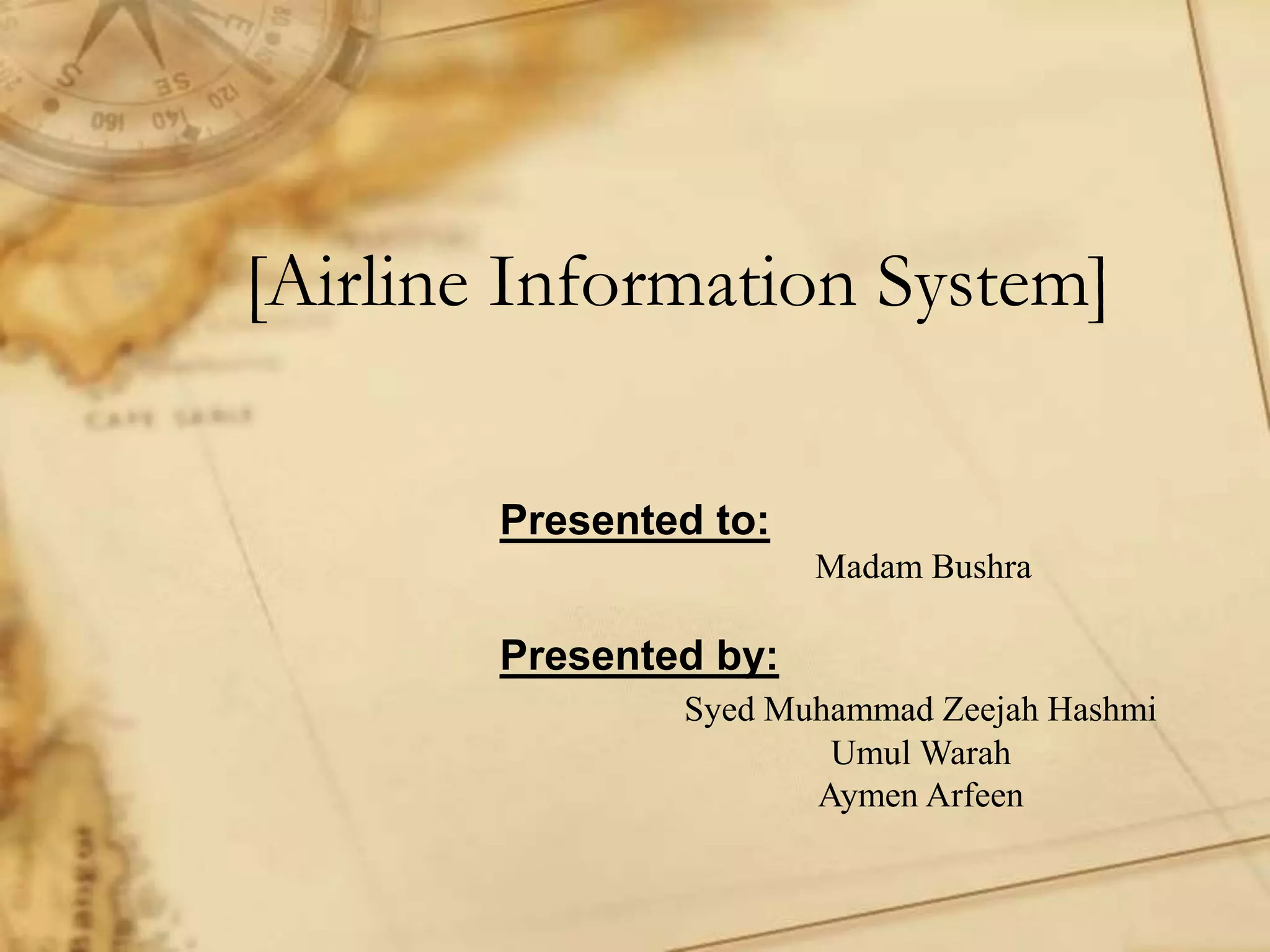 This document presents an airline information system project that aims to organize airline data and make reservations more efficient. It discusses the objectives, which include making the system online-based and reducing paperwork. The scope covers integrating flight information and providing a user-friendly search interface. It also notes hardware, software, and database requirements and includes entity relationship diagrams and normalization steps. In conclusion, it acknowledges some limitations but hopes to improve the project over time.