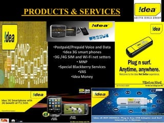 Idea Cellular is one of the top three telecom operators in India along with Airtel and Vodafone. While Airtel leads the market with 28% share, Idea has 16% market share. Idea focuses on social awareness campaigns covering health, environment, education and consumer issues. A survey found that Idea has the highest customer preference at 50% due to its network connectivity and pricing. However, only 20% of customers have used number portability to switch operators.