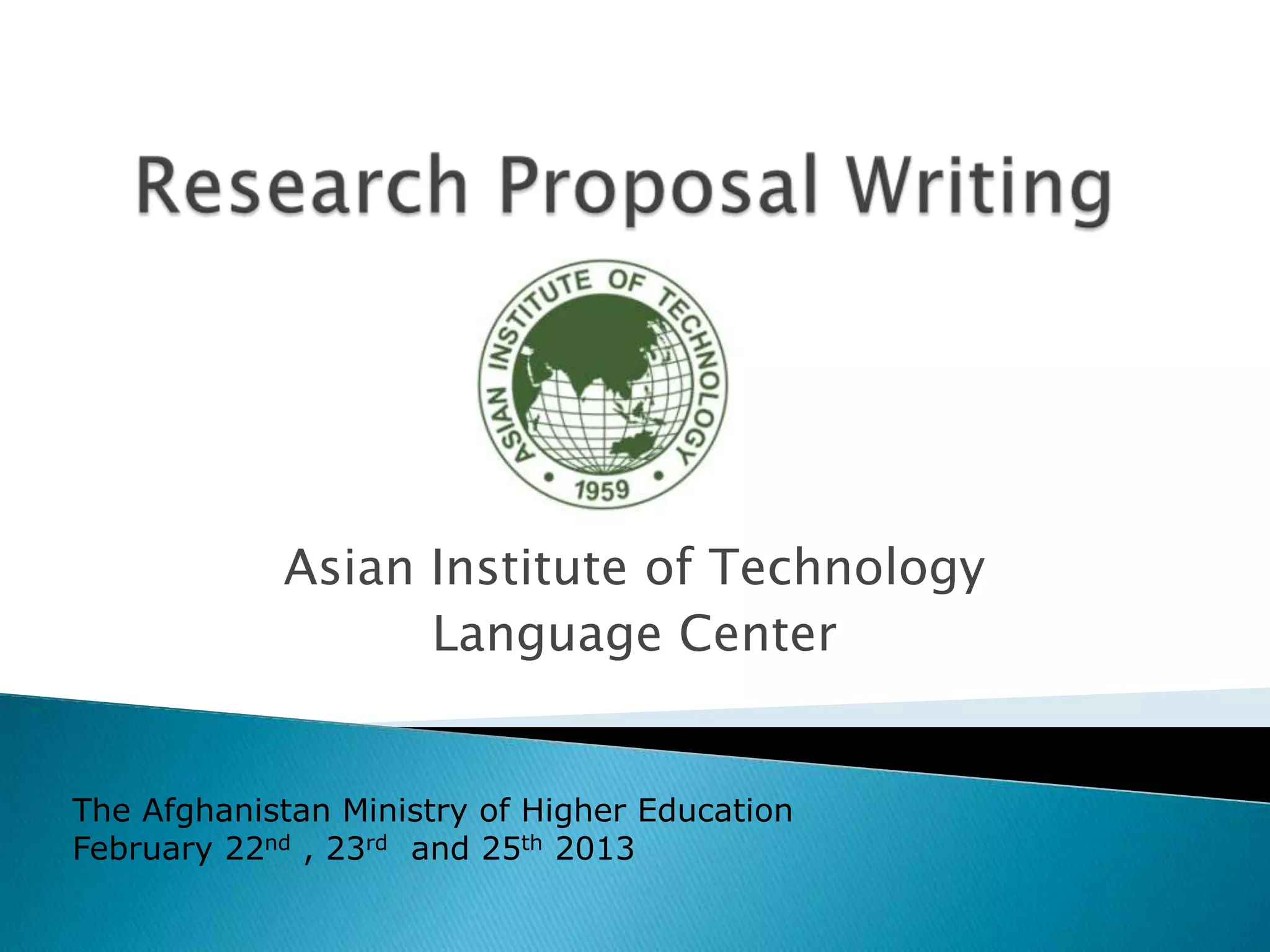 This document provides an overview of a research methods training workshop conducted by the Afghanistan Ministry of Higher Education at the Asian Institute of Technology Language Center. The 3-day workshop covered topics such as defining research, types of research, writing a research problem, developing a research design, and components of a research proposal. It also discussed qualitative and quantitative research methods, sampling techniques, developing a research proposal outline, and presenting a research project. The document provides details on the content covered each day of the workshop to help participants learn the steps for developing and conducting a research study.