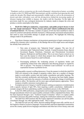 1) The AIUFWP demands a complete withdrawal of the draft EIA Notification 2020 as it weakens environmental protections and public participation in decision making.