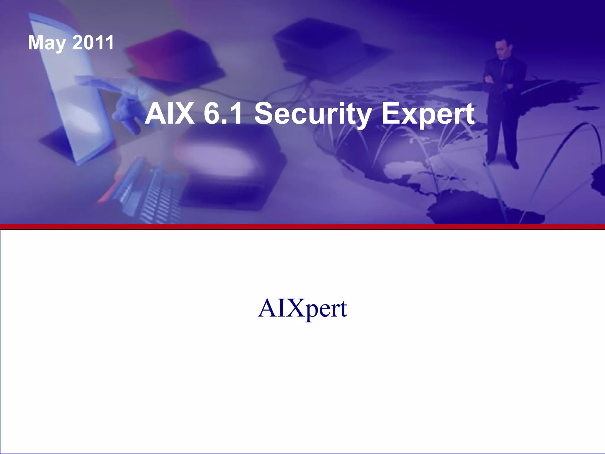 AIX 6.1 introduces several new security features including role-based access control (RBAC) which allows privileged tasks to be delegated to non-privileged users. It also includes an encrypted filesystem that encrypts data for protection and an updated security tool called AIX Security Expert for centralized security management. The document discusses these features and others such as the new secure by default installation option and systems director console.