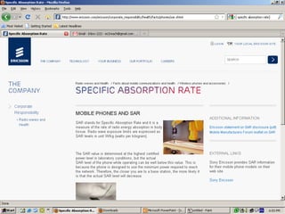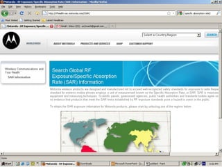 This document discusses several topics related to wireless broadband technologies including WiMAX deployment methods, virtual communities over geographical areas in India, and specific absorption rate (SAR) in communication systems. It provides examples of WiMAX network implementations for businesses in India and references several papers on electromagnetic absorption in human tissue from mobile phones.