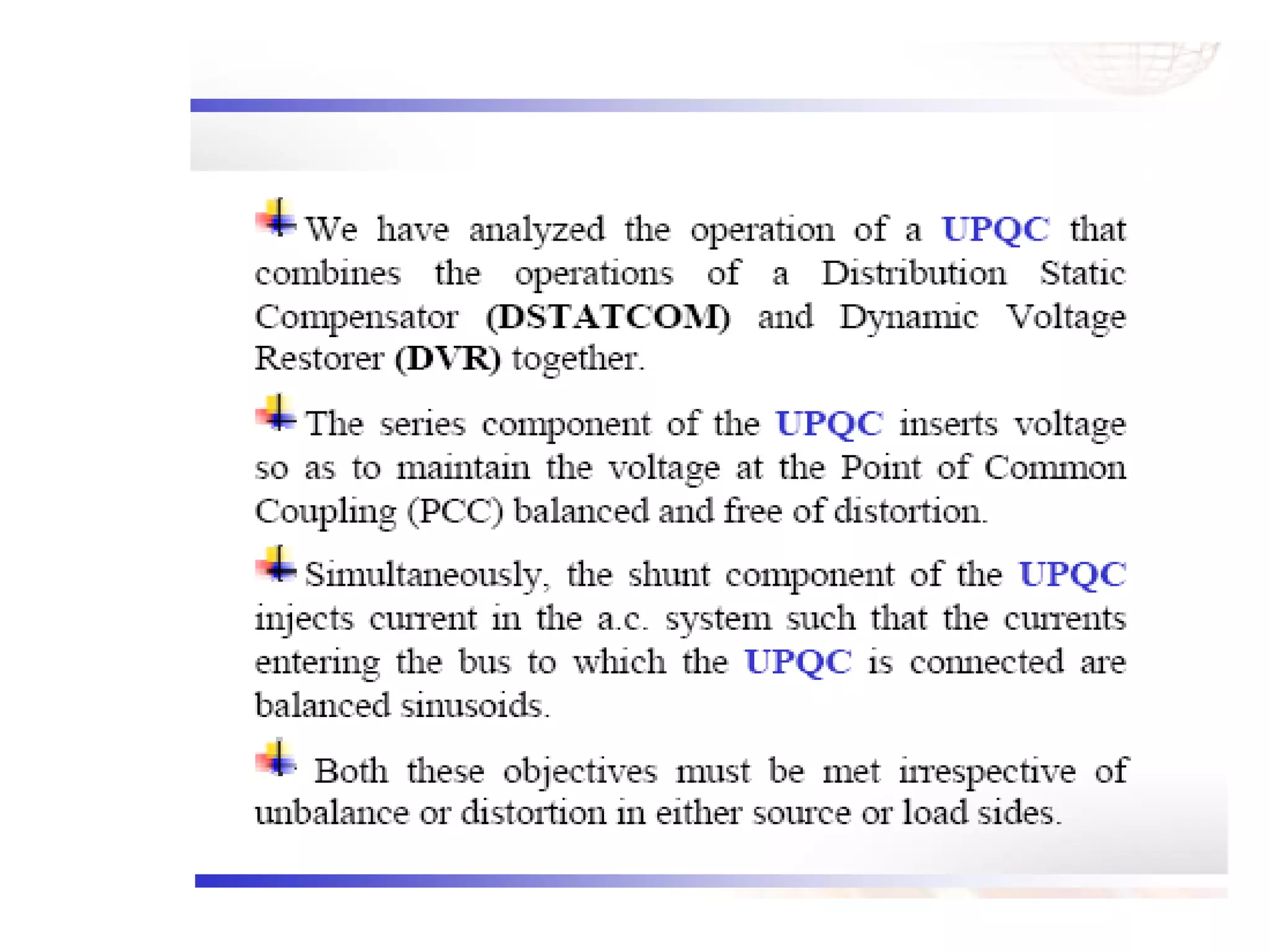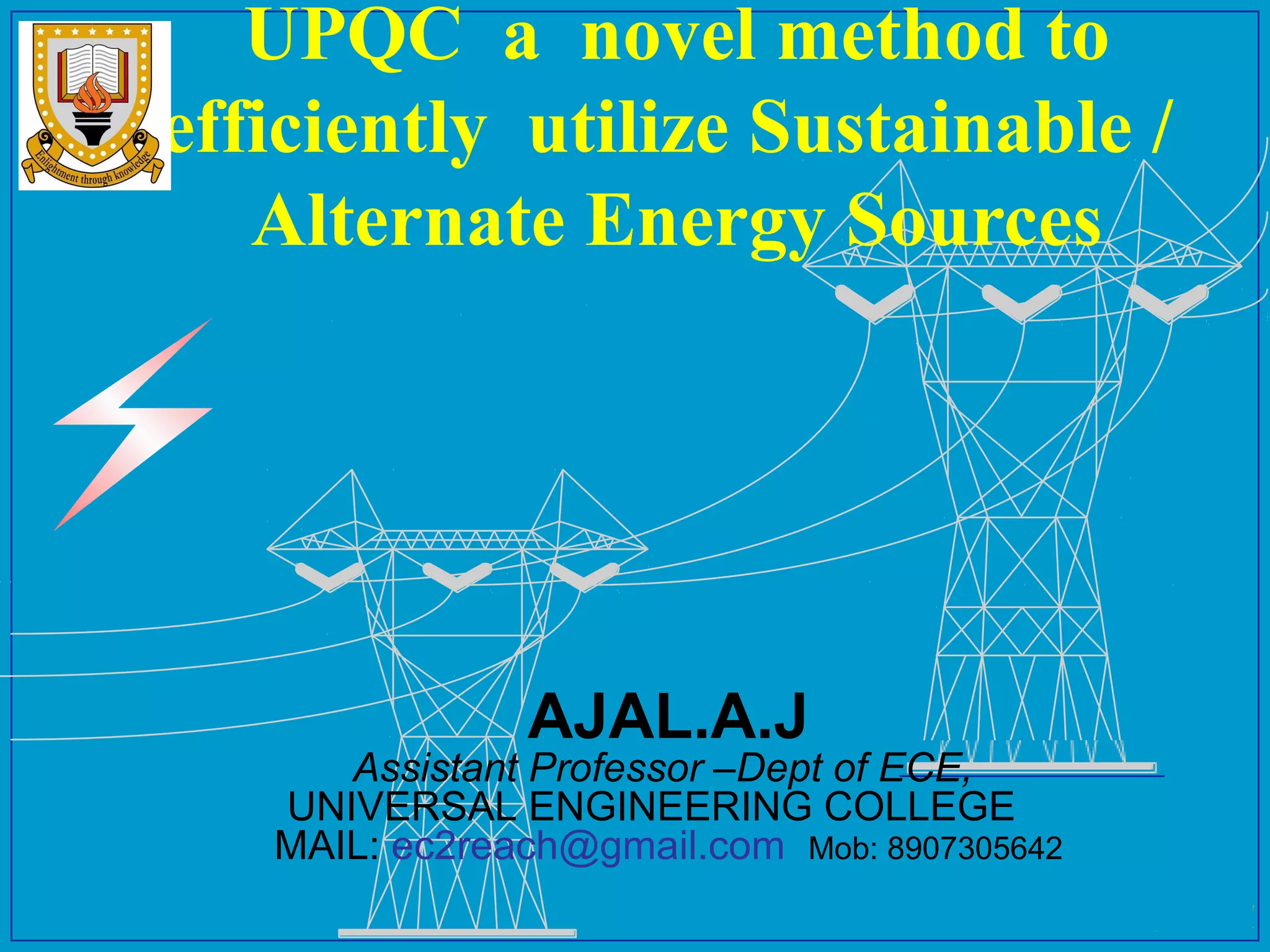 UPQC a novel method to efficiently utilize Sustainable / Alternate Energy Sources is a presentation about power quality issues and solutions. It discusses different power quality problems such as voltage sags, swells, harmonics, and reactive power issues. It then introduces several custom power devices that can address these problems including the STATCOM, DVR, and UPQC. The UPQC is described as an active series-shunt power line conditioner that can compensate for various power quality issues such as voltage sags/swells, imbalance, flicker, and harmonics. The presentation concludes by discussing future trends in power semiconductor switches and the balanced application of these new technologies.