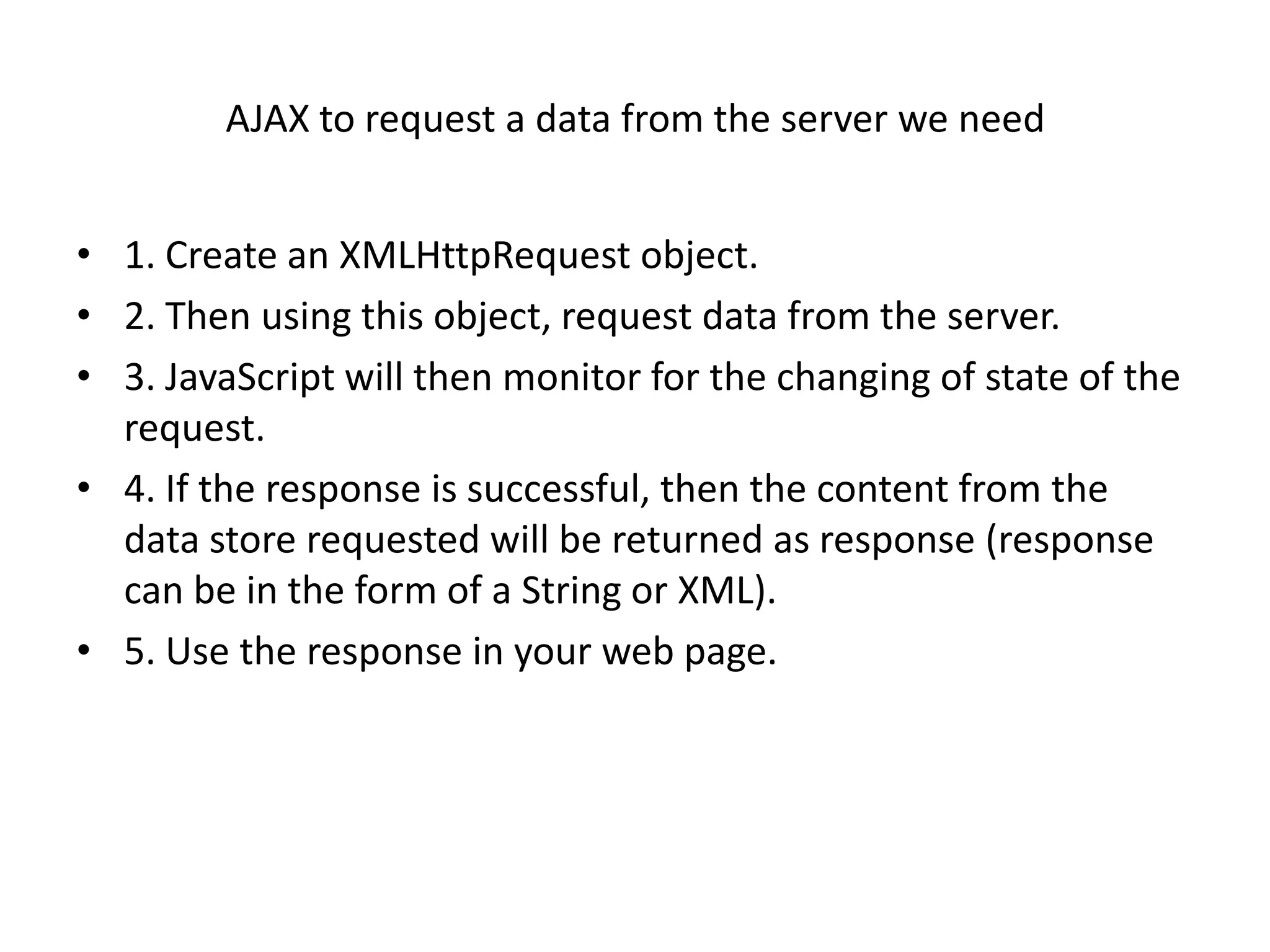 AJAX allows asynchronous communication between the browser and server without reloading the page. It uses the XMLHttpRequest object to make HTTP requests and retrieve data from the server in the background. This allows parts of the web page to be updated independently without interfering with the display and behavior of the existing page.