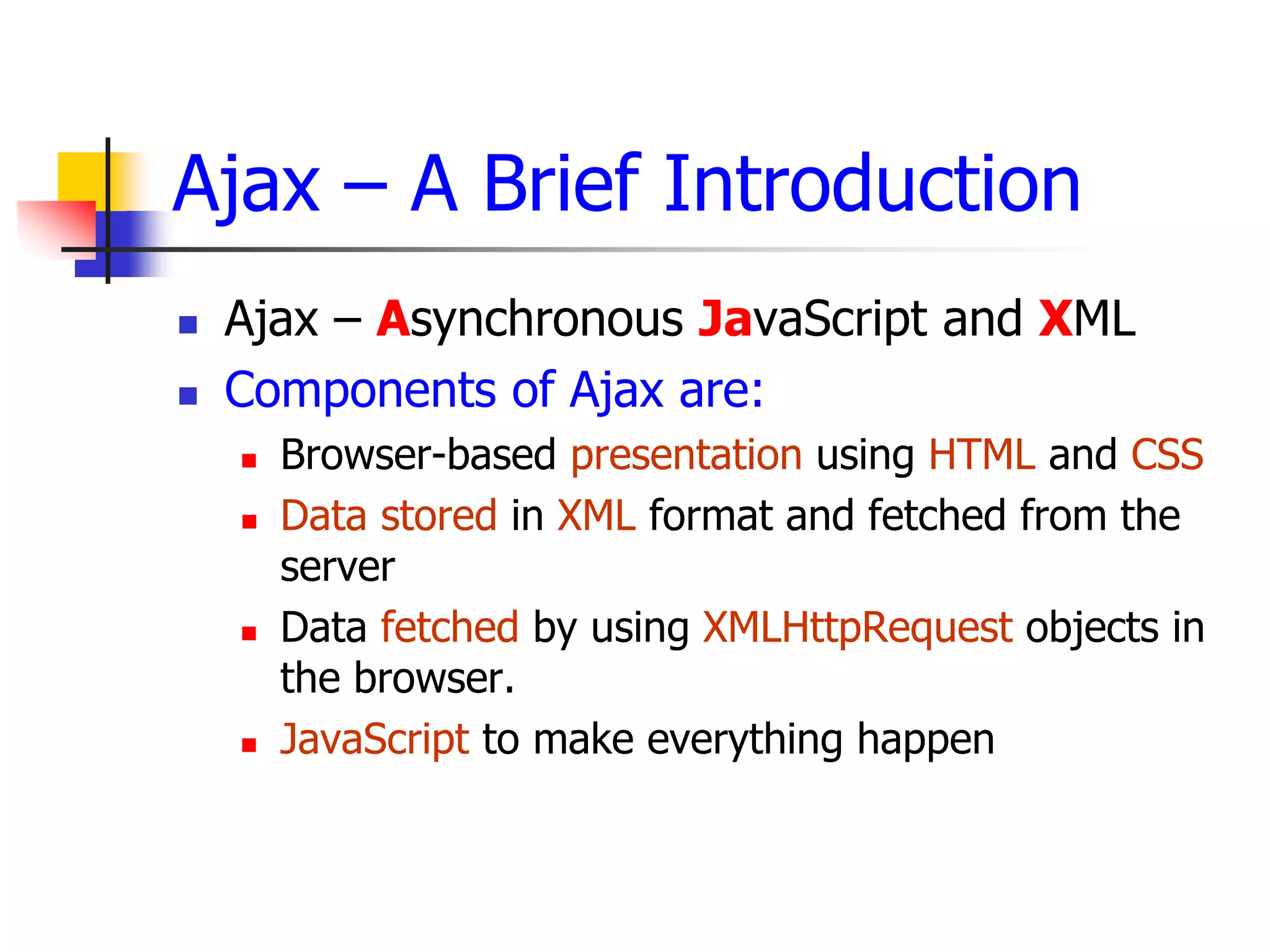 Ajax allows asynchronous retrieval of data from a server without page refreshes. It uses the XMLHttpRequest object in JavaScript to communicate with servers in the background. This allows parts of a web page to be updated without reloading the entire page. Ajax is commonly used for autocomplete, live searches, chatting applications, and updating content like news articles or maps without full page loads. It provides a more interactive and responsive experience for users.