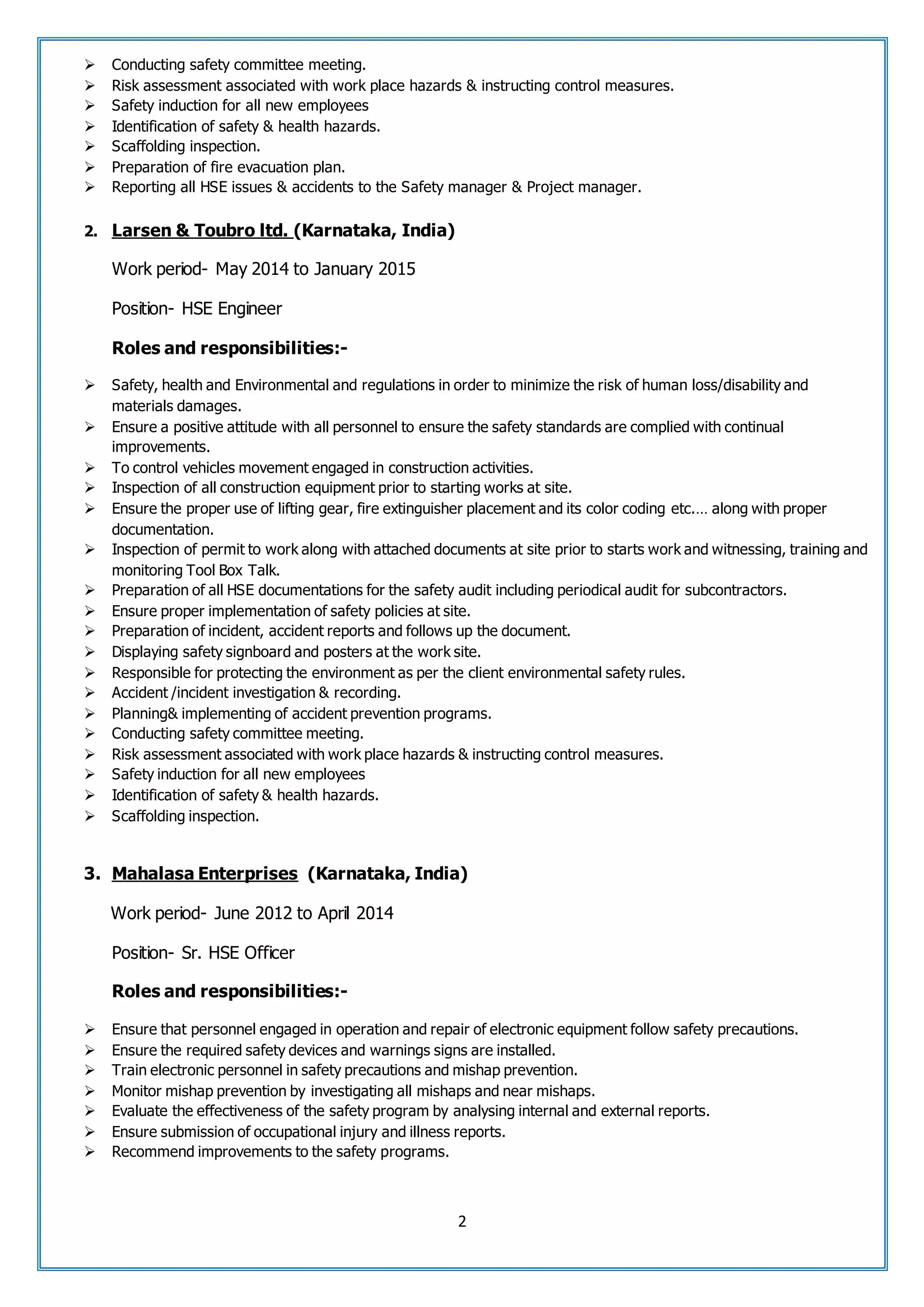 This document is a curriculum vitae for Akash S, an HSE engineer with over 6 years of experience in civil construction and HSE roles. It outlines his employment history in various HSE positions with companies in Abu Dhabi and India, and summarizes his responsibilities like developing HSE procedures, conducting audits and training, accident investigation and reporting. It also lists his professional qualifications in HSE and academic qualifications in electronics engineering.
