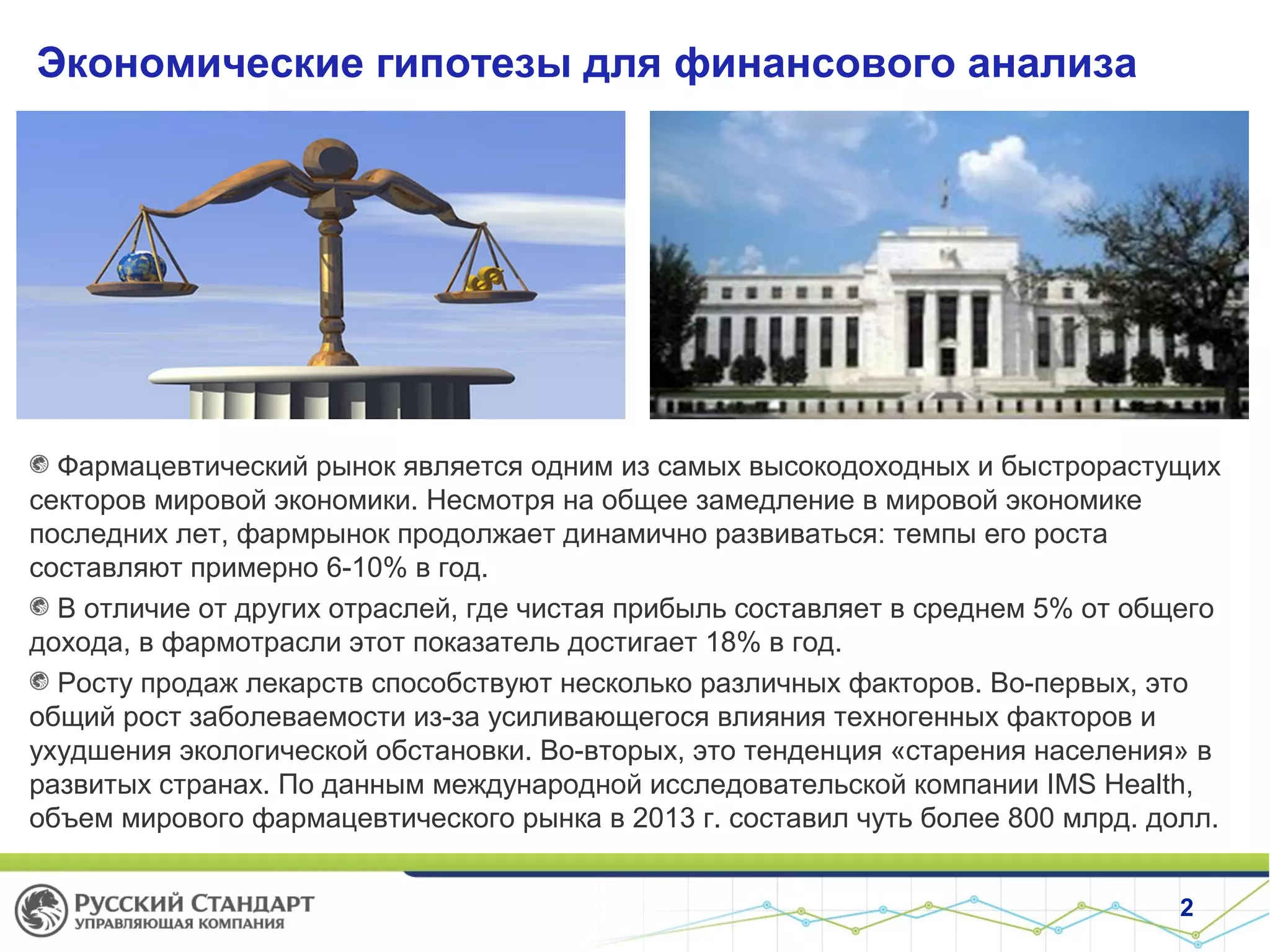 Документ описывает стратегию инвестирования в акции международных фармацевтических компаний, подчеркивая высокую доходность и рост этого сектора, который составляет 6-10% в год. Также рассматриваются ключевые компании, такие как Pfizer, Roche и Bayer, и их сильные финансовые показатели, а также риски, связанные с ухудшением макроэкономической ситуации и конкуренцией. В заключение, документ обрисовывает перспективы и потенциальные доходы от инвестиций с учетом важных экономических факторов.