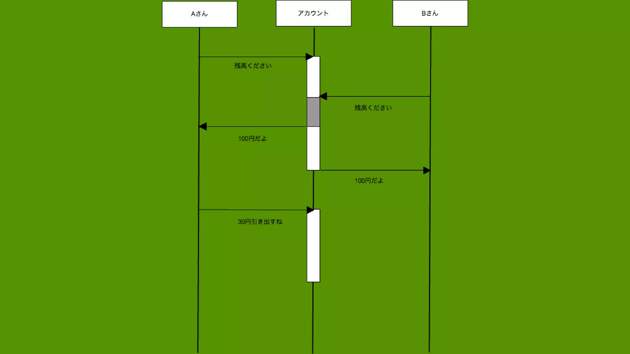 シングルスレッドの場合 (Aさんのみ) Account 100円 A 30円引き出すね