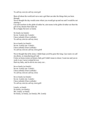 The song describes a man who is lonely and misses his girlfriend after they broke up. He reflects on how she had always been there for him through hard times, but left after he hurt her one too many times. He realizes how much he needs her in his life and wants to fix their relationship. The lyrics express his loneliness and longing to have his girl back.