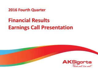 This document provides an earnings call presentation summarizing Aksigorta's 2016 fourth quarter and full year financial results. Some key points: