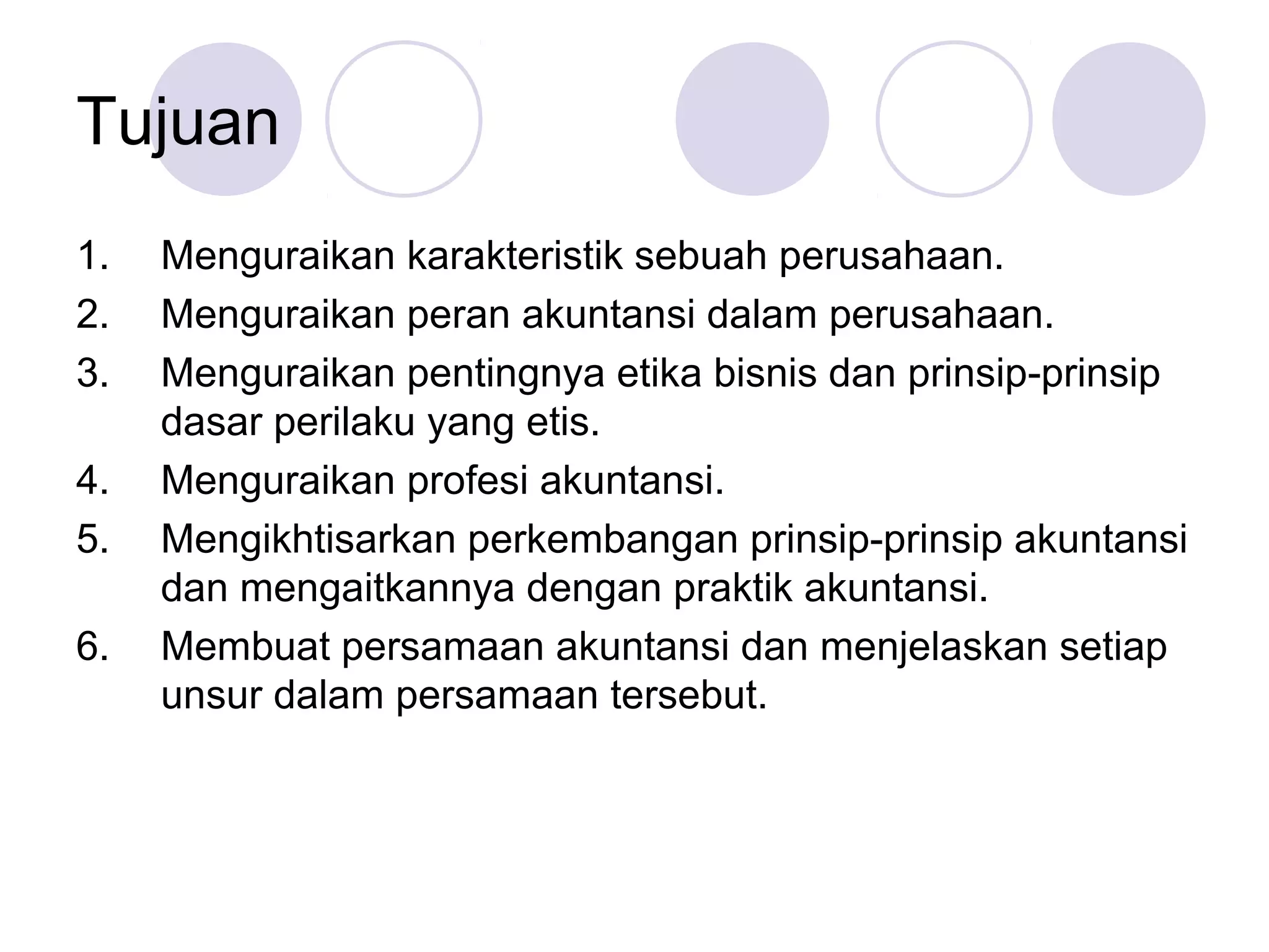Dokumen ini membahas pengantar akuntansi dan bisnis, termasuk karakteristik perusahaan, peran akuntansi, dan pentingnya etika bisnis. Juga diuraikan jenis-jenis perusahaan dan organisasi, serta strategi bisnis untuk meningkatkan keuntungan. Selain itu, terdapat penjelasan tentang laporan keuangan dan contoh transaksi yang menggambarkan penerapan akuntansi dalam praktik.