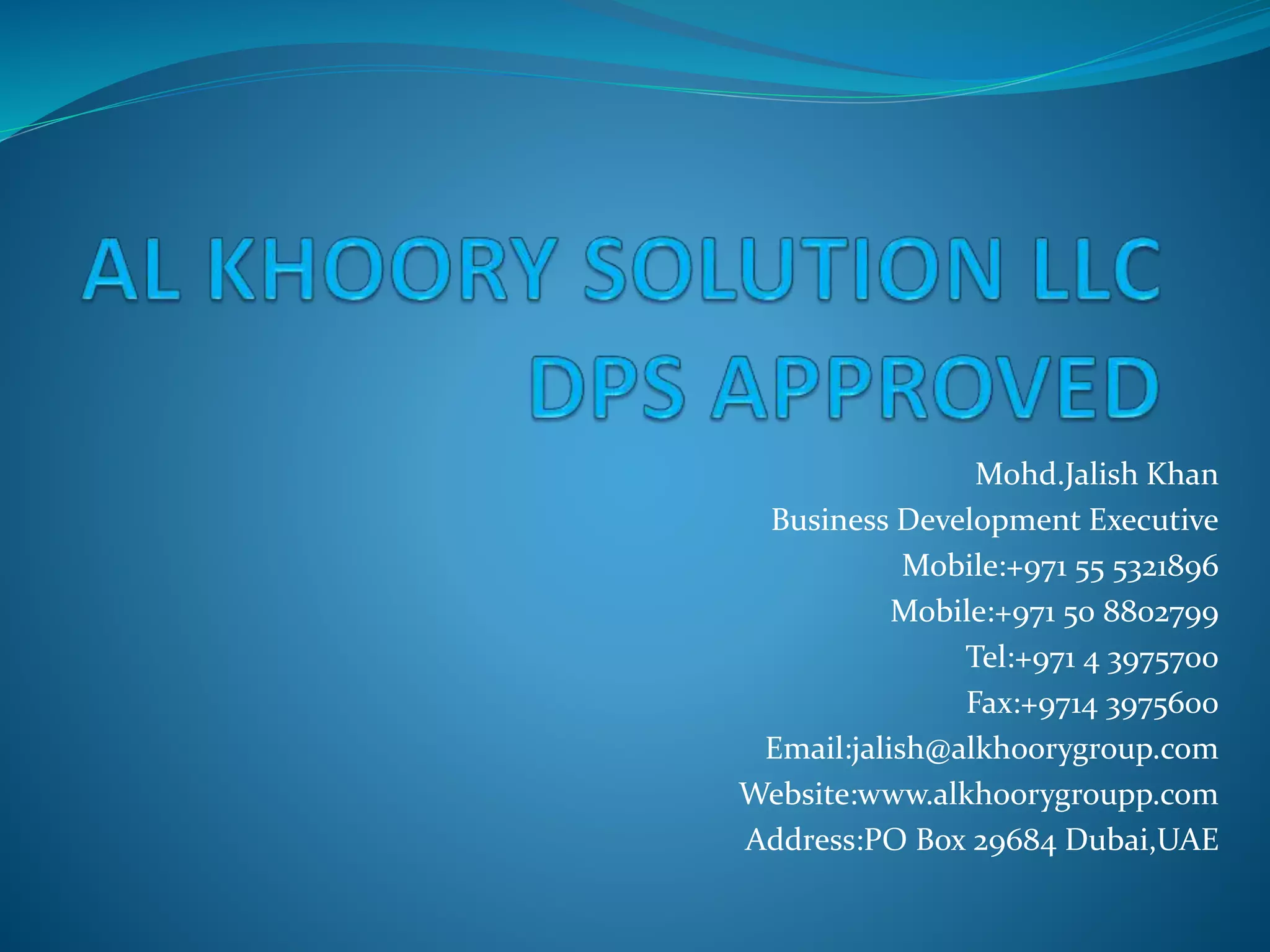 This document contains contact information for Mohd. Jalish Khan, a Business Development Executive at Alkhoory Group located in Dubai, UAE. It lists his name, job title, phone numbers, fax number, email address, company website, and mailing address.
