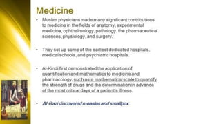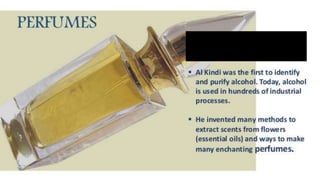 Al-Kindi was an Arab Muslim philosopher born in 801 CE in Basra who was influential in introducing Greek and Hellenistic philosophy to the Muslim world. He studied in Kufa and later moved to Baghdad to complete his education, gaining fame for his scholarship. Al-Kindi was appointed to the House of Wisdom in Baghdad by the Caliph al-Ma'mun, where he and other scholars undertook the translation of Greek scientific manuscripts. Al-Kindi influenced fields including philosophy, logic, mathematics, physics, medicine and music theory. He also influenced China with his concepts of radiation, shadows and reflection.