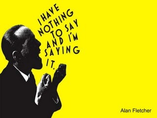 Alan Fletcher was a highly regarded British graphic designer born in 1931 in Nairobi, Kenya. He studied art in London and the United States. Some of his most notable clients included Pirelli, Cunard, Penguin Books, and Olivetti. Fletcher was known for his minimalist designs and ability to simplify complex ideas visually. He believed that ideas for design solutions often came to him while sleeping or waking.