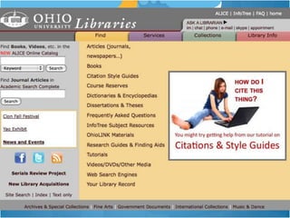 This document discusses using web video and screencasts to teach library users. It recommends keeping videos short to answer specific questions, not aiming for perfection as videos will need updating, and using free and low-cost tools for creating and hosting videos. The document also suggests embedding videos in guides and linking them on homepages where users are most likely to have questions. It provides examples of video hosting and creation tools and asks if embedded videos are being used.