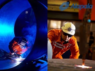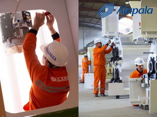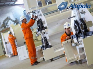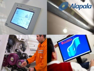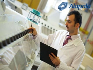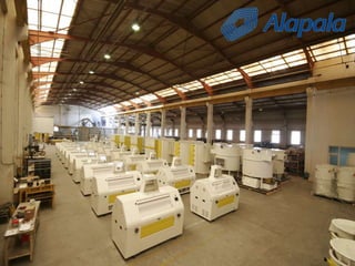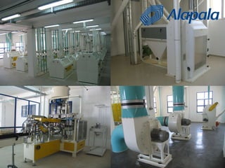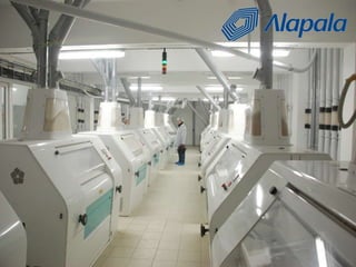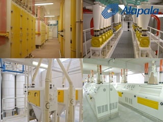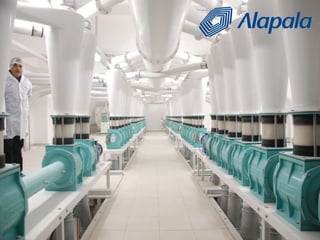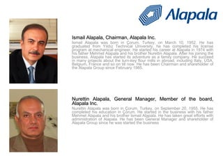 The document provides biographical information on several individuals associated with Alapala Inc., including Ismail Alapala, Nurettin Alapala, Gorkem Alapala, and Mehmet Alapala. It also summarizes Alapala's history as a family-run business dating back to 1954, their international projects establishing flour mills in over 46 countries, and their product offerings including milling solutions, handling/conveying systems, and storage systems.
