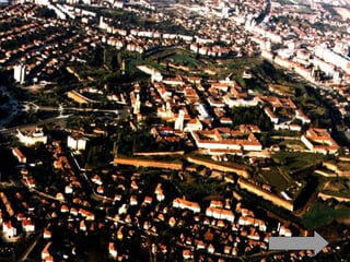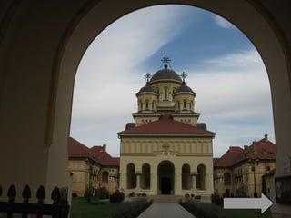 The document provides information about Alba Iulia, Romania. It discusses the town's history as a political, military, and cultural center in Transylvania. Key points include that Alba Iulia was the capital of Transylvania in the 16th century and the site where Transylvania united with Romania in 1918. The local economy relies on winemaking and agriculture. Major landmarks described are the Alba Carolina fortress from the 18th century and several important cathedrals.