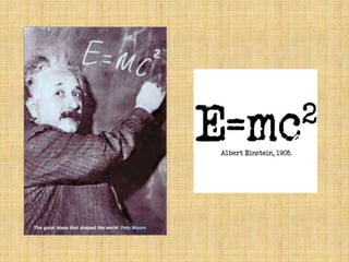 3) Einstein published groundbreaking papers on the photoelectric effect, Brownian motion, and special relativity. His mass-energy equivalence formula E=mc2 is one of the most famous scientific equations ever developed. He received the Nobel Prize in Physics in 1921.