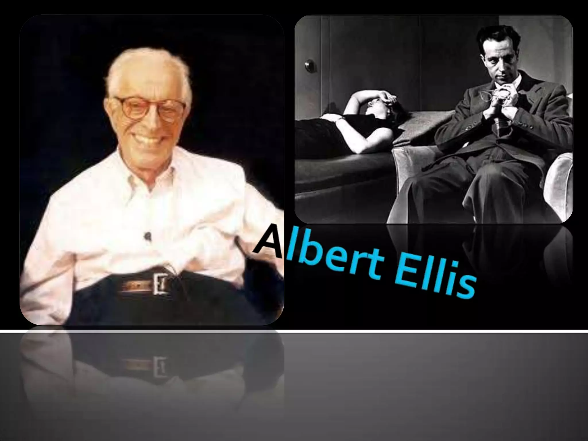 This document provides biographical information about Albert Ellis, the founder of Rational Emotive Behavior Therapy (REBT). It discusses Ellis' childhood, education, early career focusing on writing, and eventual development of REBT. The summary is: