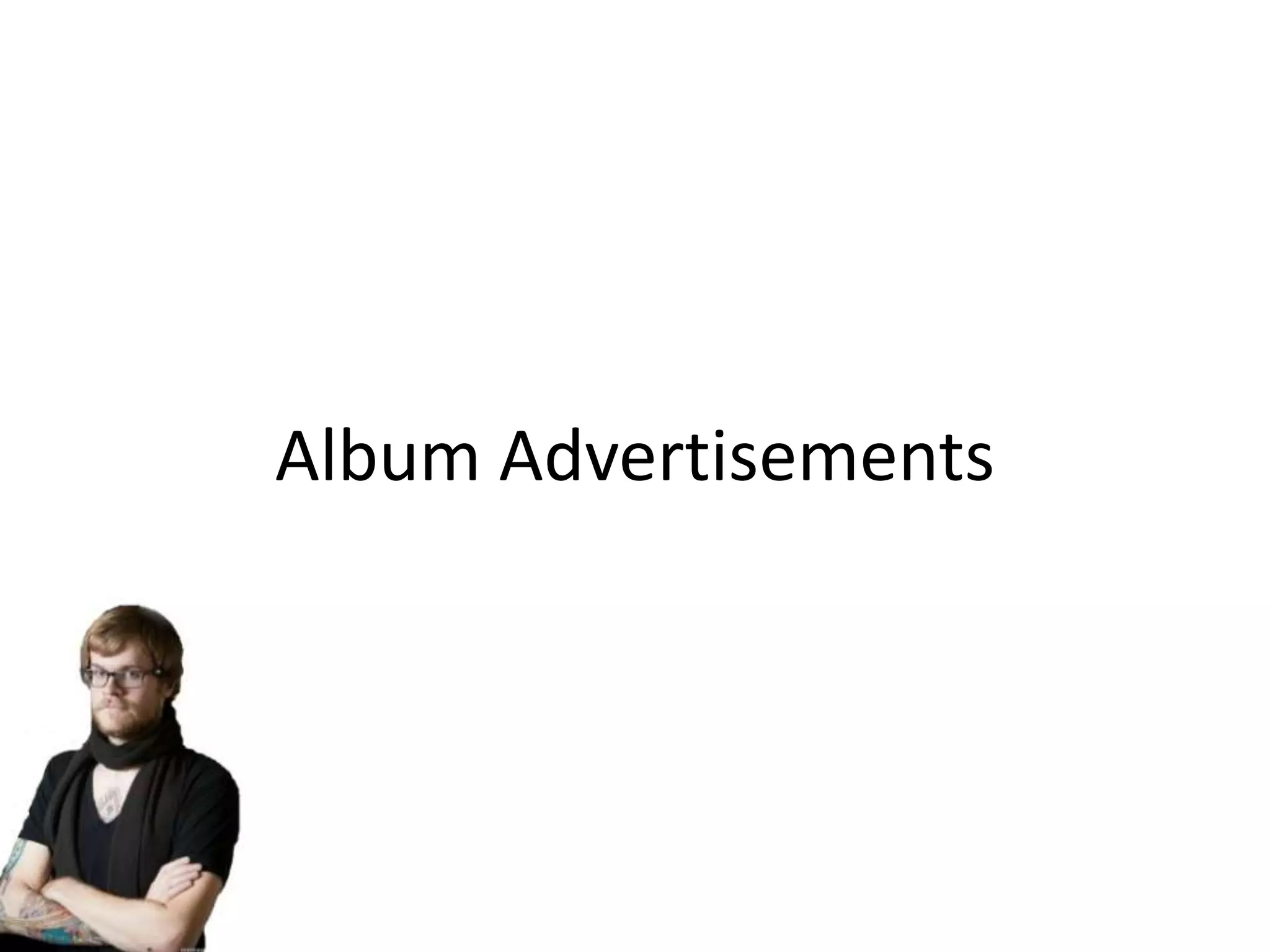 The advertisement for Two Door Cinema Club's album "Tourist History" uses the same picture as the album cover to help viewers recognize the band and album in stores. The poster prominently displays "Sold Out" to convey that their tour is actually sold out and make the band seem exciting. While the album cover centers the band name, the poster places it at the top due to its rectangular shape, as posters typically list the title above rather than in the middle.