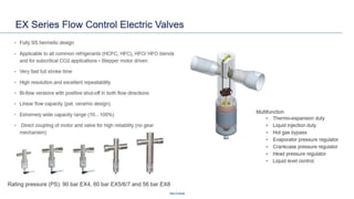 Alco Controls presented an overview of their refrigeration product portfolio and strategy for new refrigerants. They offer a wide range of products including electric control valves, electronic controllers, thermo-expansion valves, solenoid valves, and pressure controls that are qualified for HFO/HFO blends, CO2, A3, and A2L refrigerants. Their goal is to provide customers with solutions to help them transition to new refrigerants that are compliant with F-gas regulations.