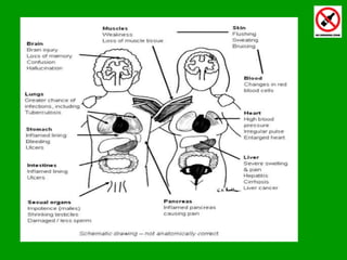 Alcohol is created through fermentation and affects the central nervous system as a depressant. While some teens drink out of curiosity or to fit in, drinking has significant health and legal risks for teens. Long term heavy drinking can lead to health issues like alcoholism, alcohol poisoning, and cirrhosis of the liver.
