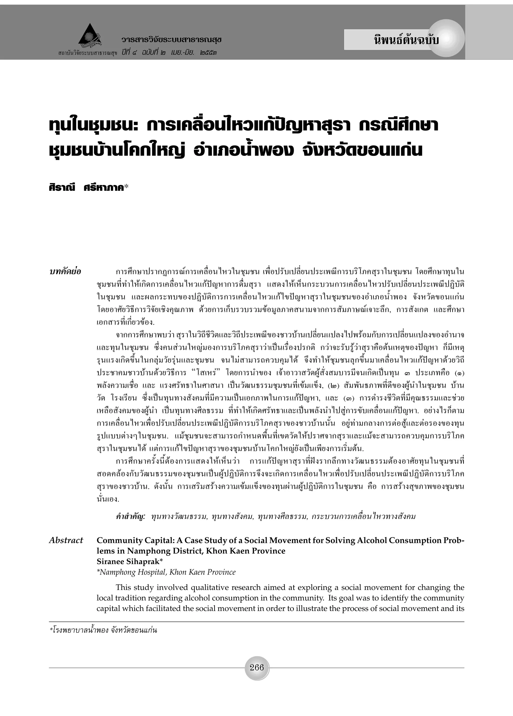 Namphong District, Khon Kaen Province. It was a qualitative research study, the main data for which