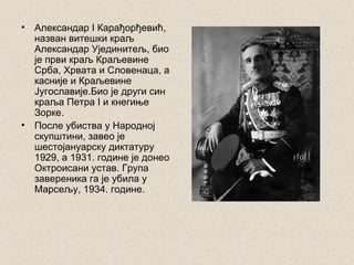 • Краљ Александар је преко