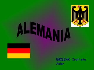 Alemaniako hiriburua Berlin da. Berlingo koordenatu geografikoak hauek dira: 52 ° Iparraldera; eta 13 ° ekialdera. Alemaniako biztanle kopurua: 32.537.000 koa da. BIZTANLERIA ETA HIRIBURUA