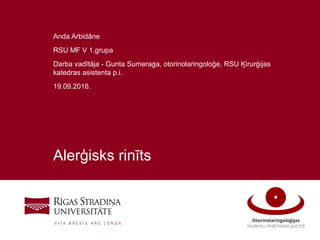 Darba vadītāja - Gunta Sumeraga, otorinolaringoloģe, RSU Ķirurģijas