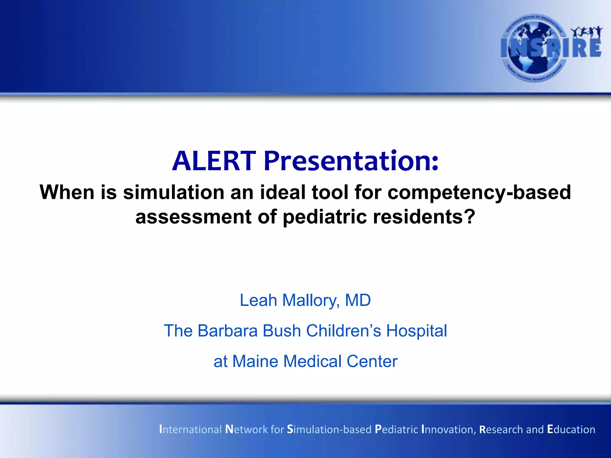 This presentation discusses using simulation for competency-based assessment of pediatric residents. More pediatric residency programs are developing simulation curricula to meet ACGME's Milestones Project for competency-based assessment. Simulation offers opportunities for structured assessment. The presentation proposes a study to identify gaps in existing assessment methods and opportunities for simulation-based assessment through a consensus-building exercise with pediatric simulation experts. It outlines plans to survey experts to prioritize Milestone subcompetencies for simulation-based assessment and review current assessment tools to define a research agenda.