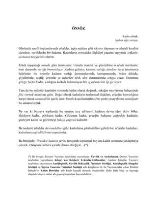 çıktığı saptamasıyla sorunu sınıf açısından irdelemek gerektiğini söyleyiverdi. O, Kadın