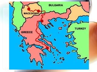 This document discusses Alexander the Great and the spread of Greek culture throughout the ancient world. It begins with a warm up activity asking about philosophers and ancient Greek mythology. It then outlines three main ideas: 1) Philip II of Macedonia united the Greek city-states by taking over their weakened powers. 2) Alexander the Great then conquered the Persian Empire. 3) Greek culture spread throughout southwest Asia as a result of Alexander's conquests.