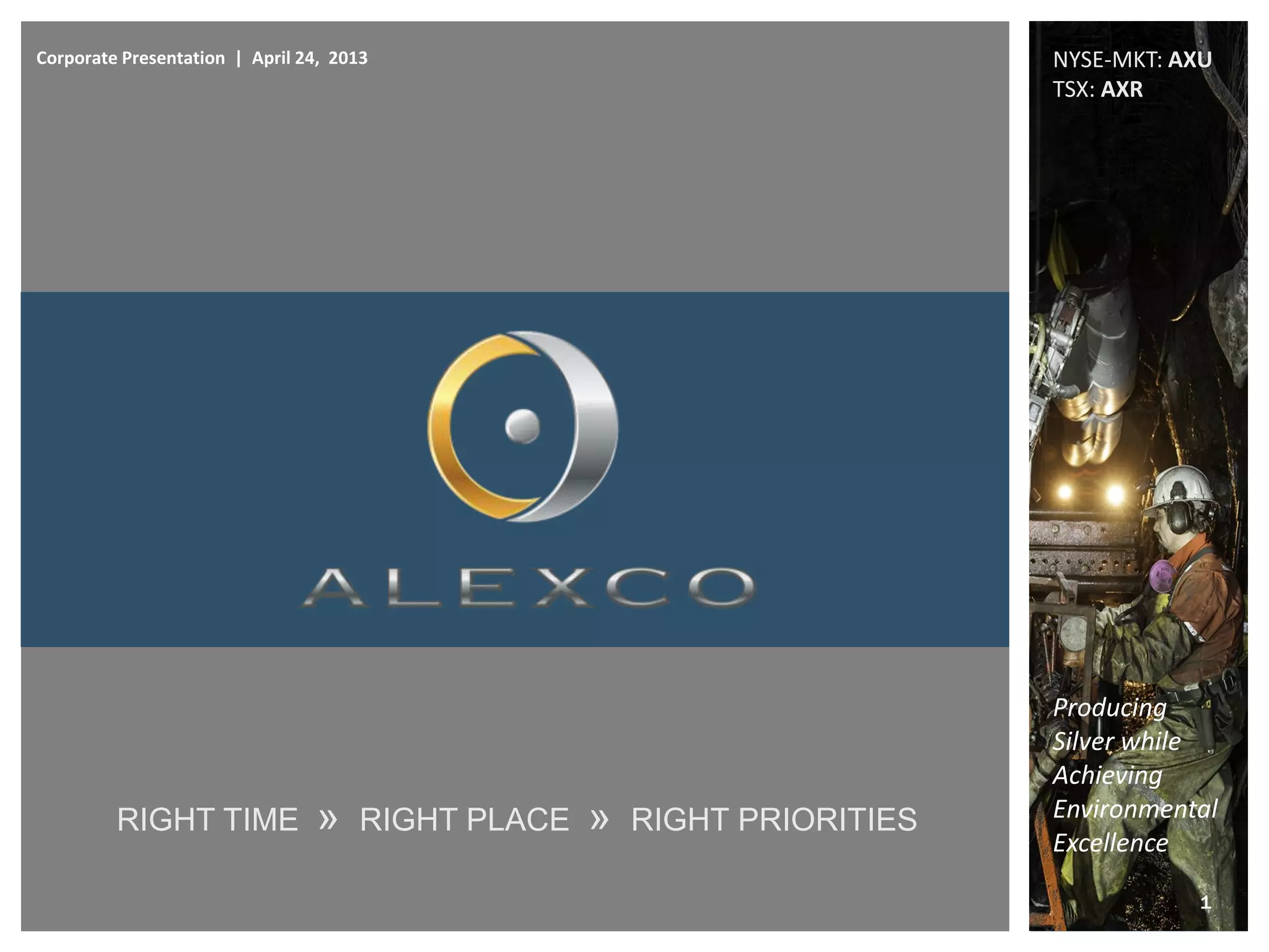 Alexco Resources Corporation presented on its plans to continue producing silver while achieving environmental excellence at its Keno Hill Silver District in Canada. The presentation highlighted Alexco's cash position, growing silver resources, current mine operations at Bellekeno, and upcoming developments at Onek, Lucky Queen, and Elsa Tailings. Alexco also discussed expanding exploration efforts across its large land package to further increase silver resources through discoveries like Flame & Moth and Bermingham.
