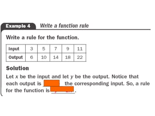 This single sentence document provides a reference to page 16 of a notebook guide about representing function tables as rules and tables. It instructs the reader to open their notebook guide to that specific page for more information on how to represent function tables as rules and tables in a concise manner.