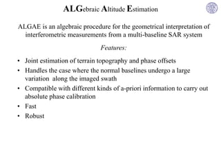 ALGAE is an algebraic procedure for jointly estimating terrain topography and interferometric phase offsets in space varying geometries from multi-baseline SAR interferometry. It handles cases where the normal baselines undergo large variations along the imaged swath. ALGAE casts the problem in an algebraic framework and uses a truncated singular value decomposition to solve issues caused by the problem's ill-conditioning. It was tested on P-band data from the BioSAR 2008 campaign, extracting ground contributions using algebraic synthesis before inputting phases to ALGAE for estimation of absolute terrain topography.