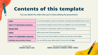 This document provides instructions and resources for a presentation template on the topic of Algebra I. It includes 3 sections, examples of equations and expressions, as well as instructions on how to properly attribute and use the template for both personal and commercial use depending on whether the user has a free or premium account. The document also lists fonts, colors, and additional graphic resources that are included and can be used or replaced within the template.