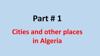 Algeria has a population of around 40 million people, with the majority living in cities like the capital Algiers which has over 2 million residents. Arabic and Berber languages are most commonly spoken, along with French. The Sahara desert covers over 80% of the country's land area. While Algeria has large oil and natural gas reserves, its economy remains dependent on these resources and has struggled to diversify despite some emerging innovative online companies in e-commerce and education.