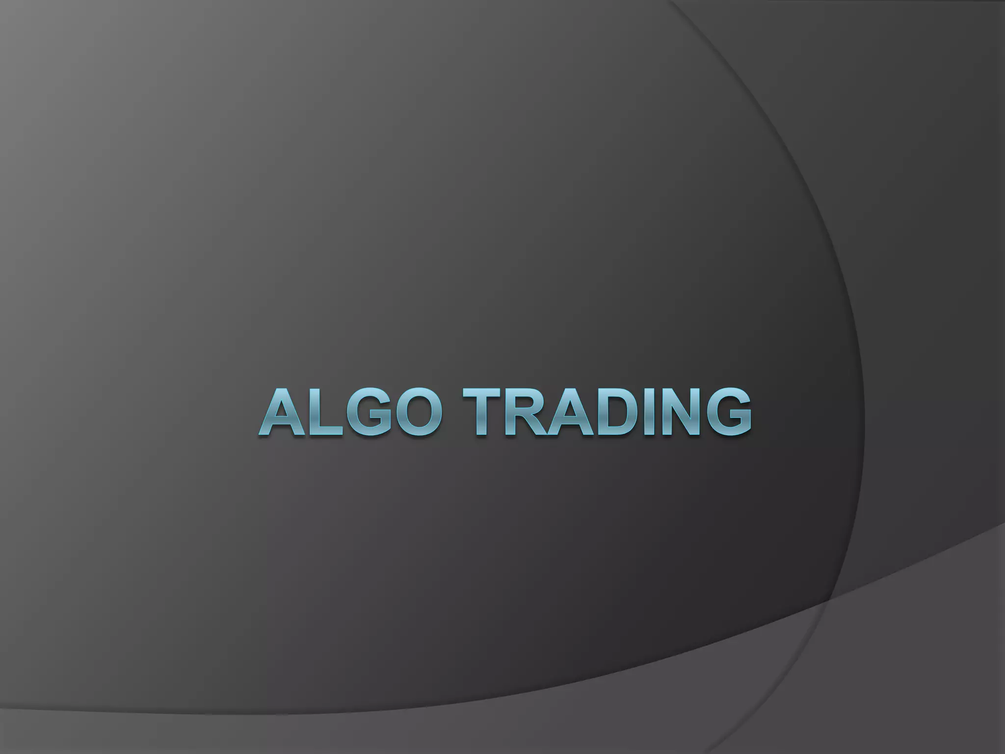 Algorithmic trading utilizes mathematical models and computer algorithms to automatically make trades based on pre-programmed instructions. It is popular in developed nations and used by large institutional investors to help brokers develop trading strategies and obtain optimal prices for large transactions while minimizing market impact. Globally, algorithmic trading accounts for around 3% of total market turnover.
