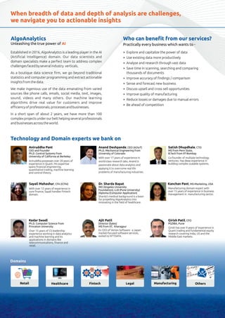 About AlgoAnalytics their expertise in the field of Data Science- Text Analytics, Image Analytics & their Partner Companies