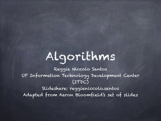 The document discusses various algorithms, including searching and sorting methods, explaining what an algorithm is and providing examples such as linear search, binary search, bubble sort, and insertion sort. It outlines properties of algorithms, their performance in terms of running time, and compares their efficiency. The content serves as a foundational overview of algorithms in computer science.