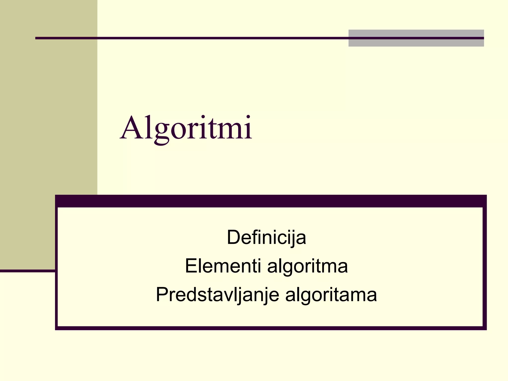 Algoritampredstavlja konačan skup jasno definisanih pravila