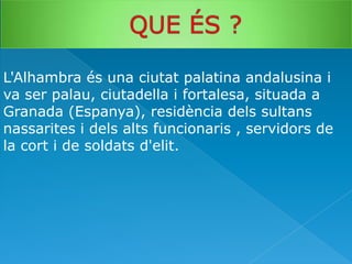L'Alhambra és unaciutat palatina andalusina i