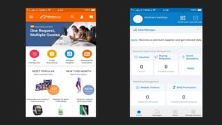 3) The document outlines Alibaba's business models, comparison to major shopping events in other regions like Black Friday, and its expansion of services to India.